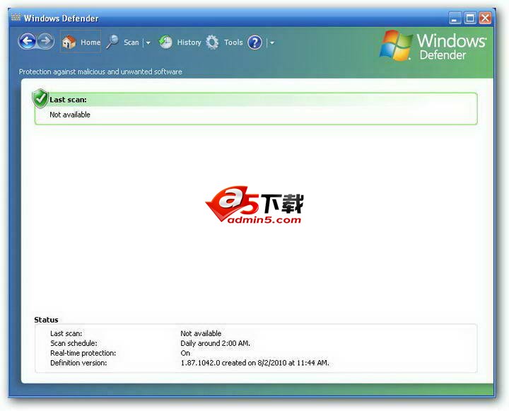 注意:要安装基于 Windows Vista 的计算机上的文件,用鼠标右键单击该文件,然后单击运行另存为管理员才能安装它。当在定义文件运行时,会出现一个文件提取对话框框。该对话框表明正在安装定义更新。文件提取对话框关闭后,您可以验证 Windows Defender 定义已被更新。为此,打开 Windows Defender,然后检查在 Windows Defender Home 对话框的底部框中所列定义版本。企业客户应使用 Windows Server Update Services (WSUS) 版本 2.0 或更高版本来分发 Windows Defender 定义更新。 但是,这些客户也可以使用用户登录脚本来手动安装一个定义更新通过运行一个 Windows Defender 定义更新文件。