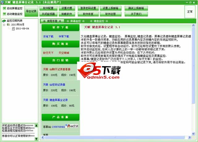 天眼键盘屏幕全记录是一款操作简单、功能实用的记录屏幕内容及按键内容的系统监视软件,并且可以将每天的键盘记录和屏幕截图信息发送到你指定的邮箱。