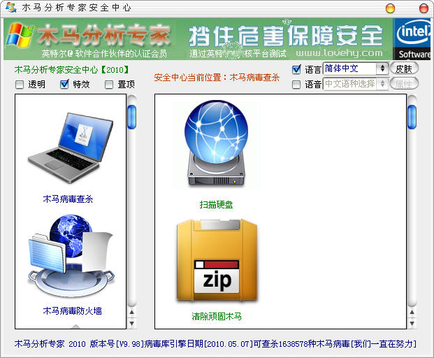 木马分析专家2012专业版拥有当今最全面的八大主动防御体系,对内存、文件、注册表、网络、密码、邮件、Office、系统进程智能行为分析,有效地拦截未知木马,未知病毒,未知间谍等。配合更快更准确的MyChecker及MyStreams智能高速指纹控制流扫描引擎(独创),驱动级木马强杀技术及内核级自身保护技术,可以更大限度地保护您的系统不受侵害。完美兼容Vista及Win7操作系统,可自动查杀上百万种木马、病毒、后门程序、黑客程序、间谍软件等,配合手动分析可近100%对未知木马病毒进行查杀,是全新一代云安全技术的木马、病毒查杀工具!它具有专业的分析功能,完美的升级功能,让您远离木马、病毒的困扰,确保您能有一个安全的环境工作!