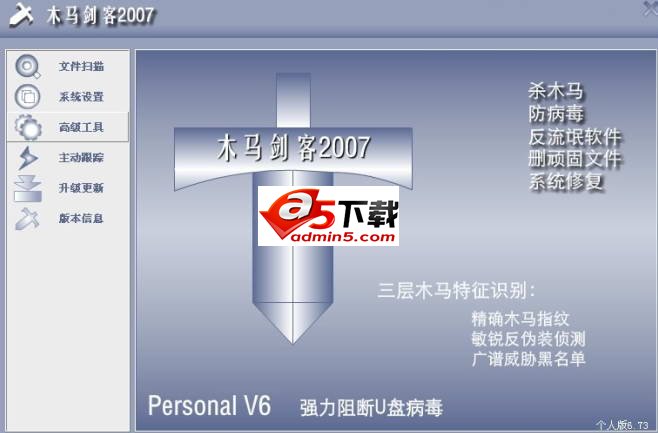 木马剑是一款免费清除木马软件,软件内核木马清除专家基本原型,简单快捷的操作方式,快速查找并清除计算机中的木马及黑客程序;智能杀毒,在线升级,有效查杀各种流行QQ盗号木马,网游盗号木马,冲击波,灰鸽子,黑客后门及流氓恶意软件.