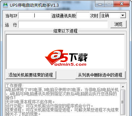 UPS停电自动关机助手添加运行功能与结束进程功能。