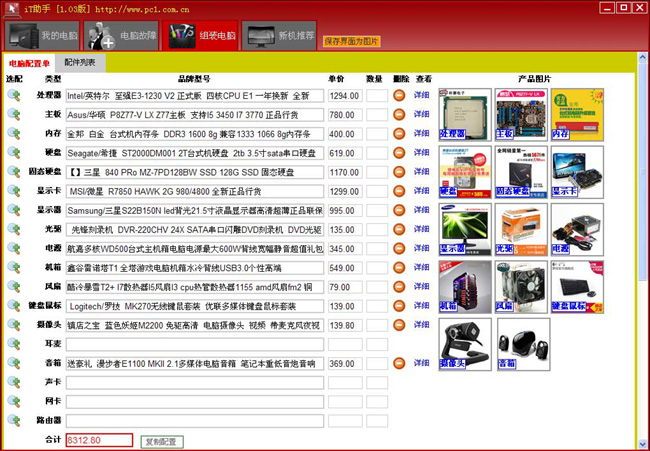 iT助手是全面的检测电脑硬件型号的绿色工具,同时提供装机人员喜爱的简单易用的电脑组装配置报价功能,报价真实可靠!iT助手拥有简单全面的硬件检测,不仅超级准确,让你的电脑配置一目了然,拒绝奸商蒙蔽。同时提供完善DIY组装报价系统,提供市场上准确配件报价,和众多的硬件产品型号选择。