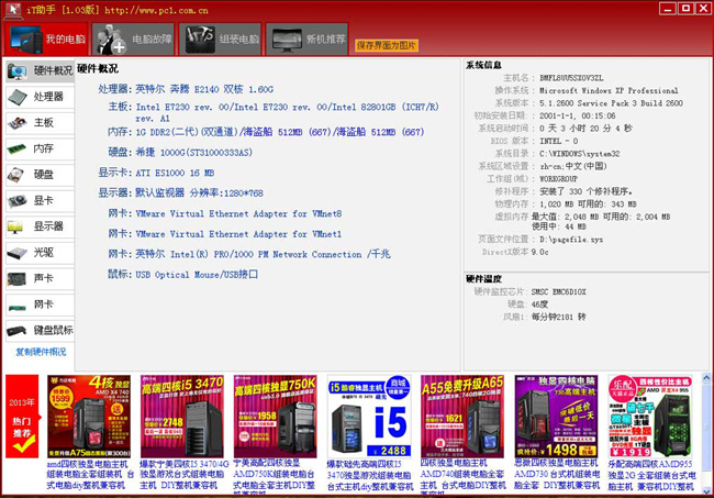 在硬件概览,iT助手显示您的计算机的硬件配置的简洁报告,报告包含以下内容: