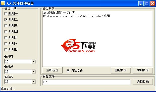 人人文件自动备份结合扩展界面支持库和操作系统界面功能支持库,实现目录或文件的自动备份。 使用说明: 下载软件—打开软件—选择备份日期—添加备份目录—选择目标文件—设置备份时间—点击立即备份,可选择是否自动备份。 点评: 人人文件自动备份是是一款功能强大的文件备份工具,可以按时间进行备份,也可以自动备份。