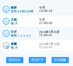 行云海定时关机助手是一款小巧实用的免费关机|闹钟|提示工具软件。集成了定时/延时/空闲 打开(程序/网站/文件)、关机、重启、注销、锁定屏幕、关闭显示器、休眠和挂机功能。集成桌面时钟(win8风格),语音报时,闹钟提醒功能。也可立即执行任务(右击托盘菜单处)。体积小,占用资源小。