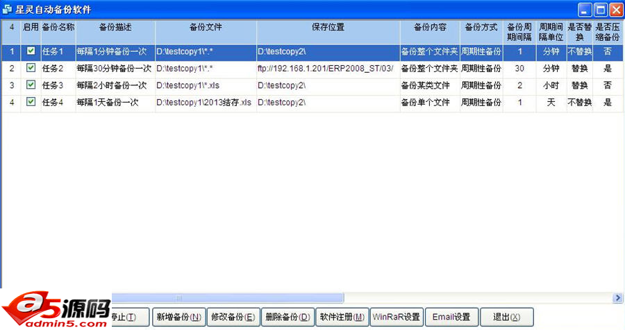 2.可以设置多个备份任务。