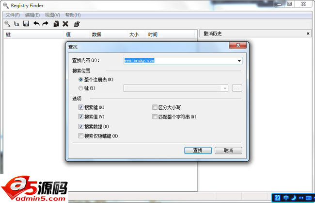 搜索选项包括:键。值数据。可以搜索隐藏键,支持区分大小写搜索以及匹配整个字符串搜索。