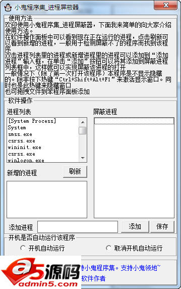在软件操作面板中可以看到现在正在运行的进程,点击刷新可以看到新增的进程,一般用于检测屏蔽不了的程序而找到该程序。