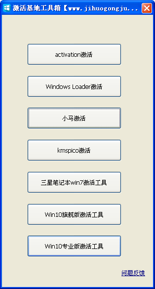 激活基地工具箱是一款简单好用却万能的激活工具。软件集成了activation, windows loader,小马,kmspico以及三星专用激活等众多激活工具为一体,激活率基本上达到百分之百,真正的做到了万能激活。激活基地工具箱界面美观简洁、使用方便,激活速度快,质量高,对于用户来说是一款很不错的软件,小编这里推荐大家使用这款软件!