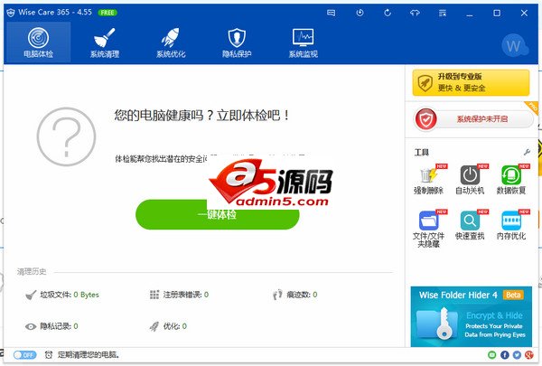 Wise Care 365是一款全能的智能系统优化工具,据说是Wise PC Engineer(PC工程师)的衍生版,具有丰富的系统清理、优化及设置功能,对于注册表的整理/清理/优化和备份、恢复以及磁盘擦除、系统精简、文件粉碎、启动项管理、系统优化皆有着独到的“见解”,然而这系列的操作对于Windows本身的安全性、稳定性并未造成丝毫不良影响。