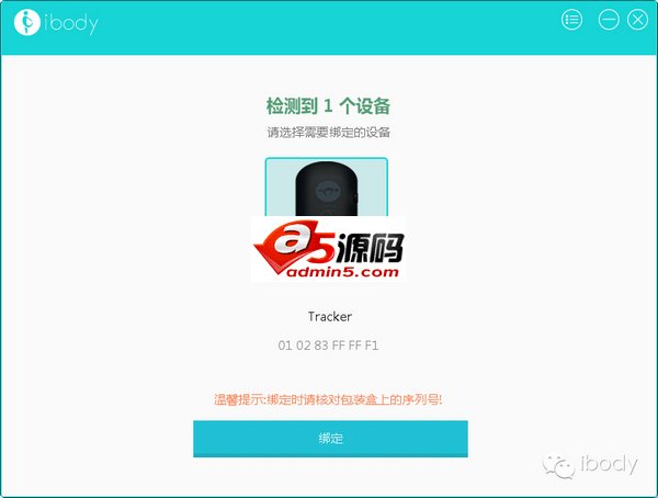 登录账号后将ibody追客用USB线连接至电脑,将会弹出“检测到设备”的界面(如图),单击绑定。