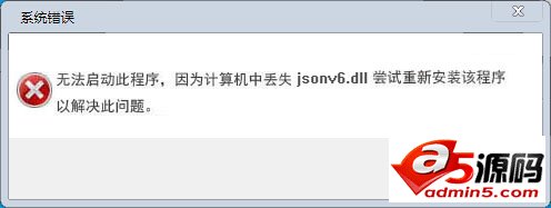 如果您的系统提示“没有找到jsonv6.dll文件”或“jsonv6.dll文件缺失” 或者“jsonv6.dll文件错误”等等,请不用担心,在本页下载。下载到该DLL文件后用winrar解压缩直接拷贝到原目录即可解决错误提示!希望我们提供的jsonv6.dll文件对您有所帮助!