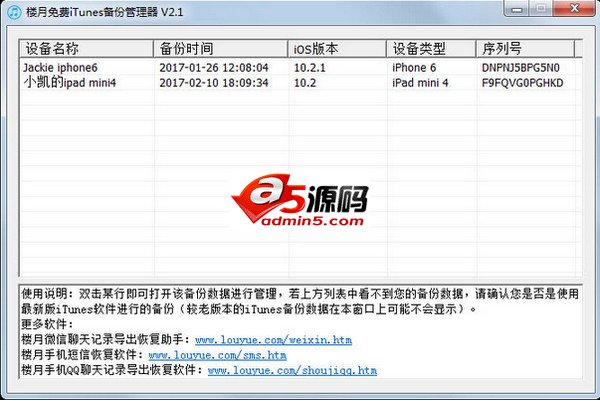 楼月免费iTunes备份管理器可以将苹果手机或ipad平板电脑上的文件备份,并可以将备份下来的任意文件或文件夹导出到电脑中进行处理。