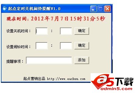 软件介绍: 起点定时关机闹铃提醒V1.0由起点营销独立开发,是一款绿色免费软件,集成了定时关机、定时闹铃、定时提醒等功能。 专业的电脑定时关机软件免安装版、再也不用苦苦守候了!省时省力省钱。