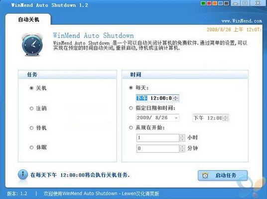WinMend Auto Shutdown 是一个可以自动关闭计算机的免费软件。通过简单的设置,可以实现在预定的时间自动关闭,重新启动,待机或注销计算机。
