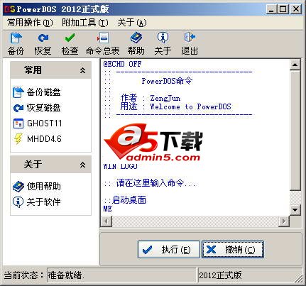 软件在Windows下记录您的命令,依靠内嵌DOS子系统完成实际操作,因此任务在执行前软件会提示重新启动。