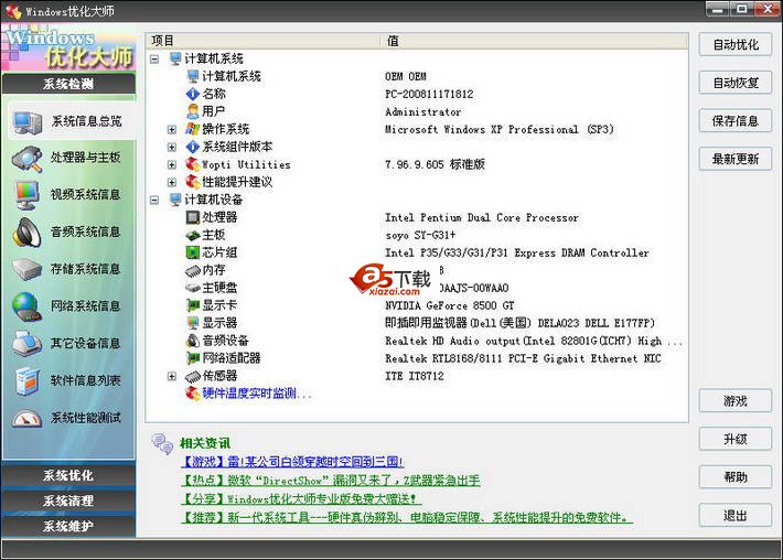Windows优化大师 v7.99 Build 13.604免费版升级说明: