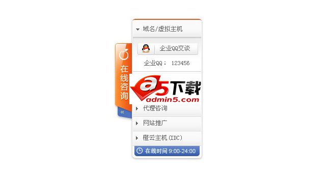 美橙互联jQuery在线客服默认右侧收缩隐藏,鼠标点击方可展开。