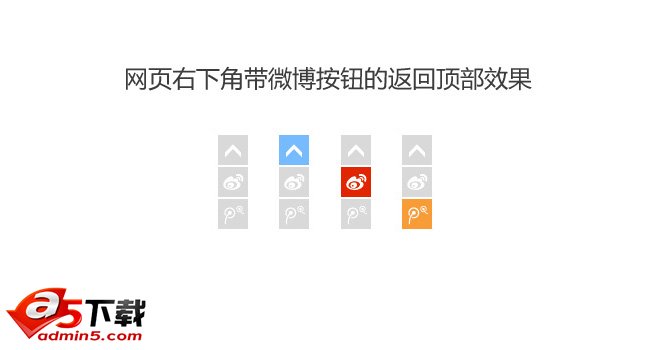 jQuery带微博按钮返回顶部效果是一款基于jquery+css3实现的网页右下角带微博按钮的返回顶部特效。