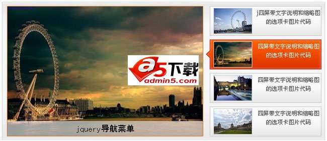四屏带文字说明和缩略图的选项卡图片代码,原生态js特效代码,没有用到jquery库。