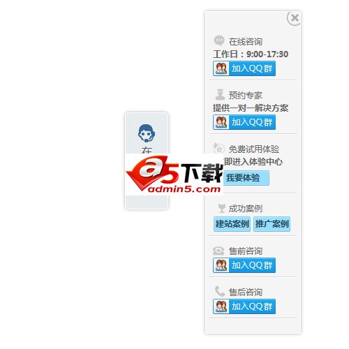 该浮动qq客服代码美观大方,广泛适用于各个行业,完美兼容网站首页、列表页、内容页的底部,可有利于网站咨询转化率提升,增加更多留言及咨询量,首次使用,请看以下教程,高手请绕行。