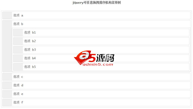 jQuery可任意拖拽排序机构菜单树,菜单可任意拖动。