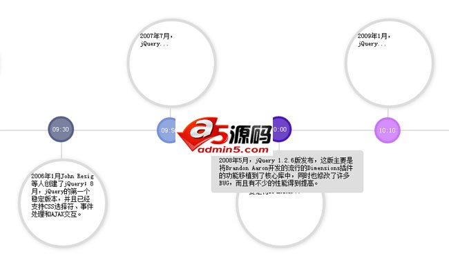 jQuery水平时间轴样式代码是一款水平线性布局的用户活动信息时间轴代码。