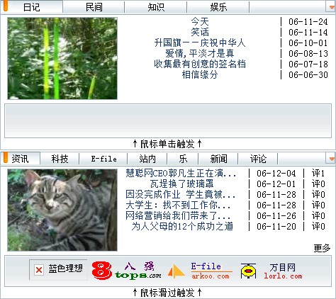 当前位置:下载COM绿色软件园 > JS特效 > JS常用代码 > 选项卡TAB > 网易雅虎滑动门效果
