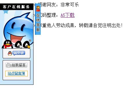 当前位置:下载COM绿色软件园 > JS特效 > JS广告代码 > 在线客服 > 腾讯QQ和淘宝旺旺在线客服代码
