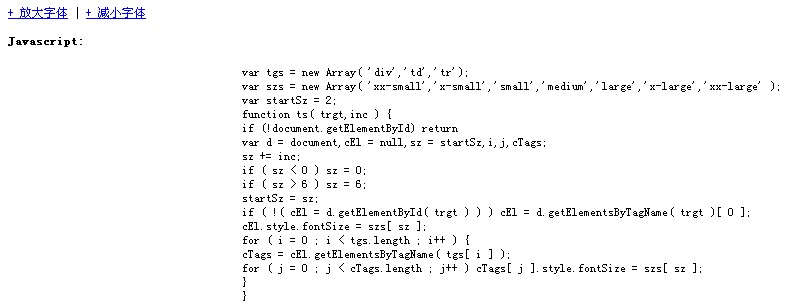当前位置:下载COM绿色软件园 > JS特效 > JS常用代码 > 文字特效 > js控制页面字体大小