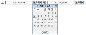当前位置:下载COM绿色软件园 > JS特效 > JS常用代码 > 日期时间 > 可选择起始日期和结束日期的时间选择器