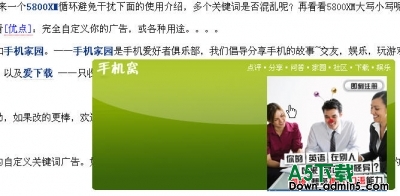 智能文中广告系统简介 利用您的站内文章中关键词匹配、行为定向。将广告主投放的广告展现给最相关的消费者群。它通过文中广告、浮屏窗口、视频内容、索引注释功能等带给网民全新的上网体验。 最重要的是:免费的。