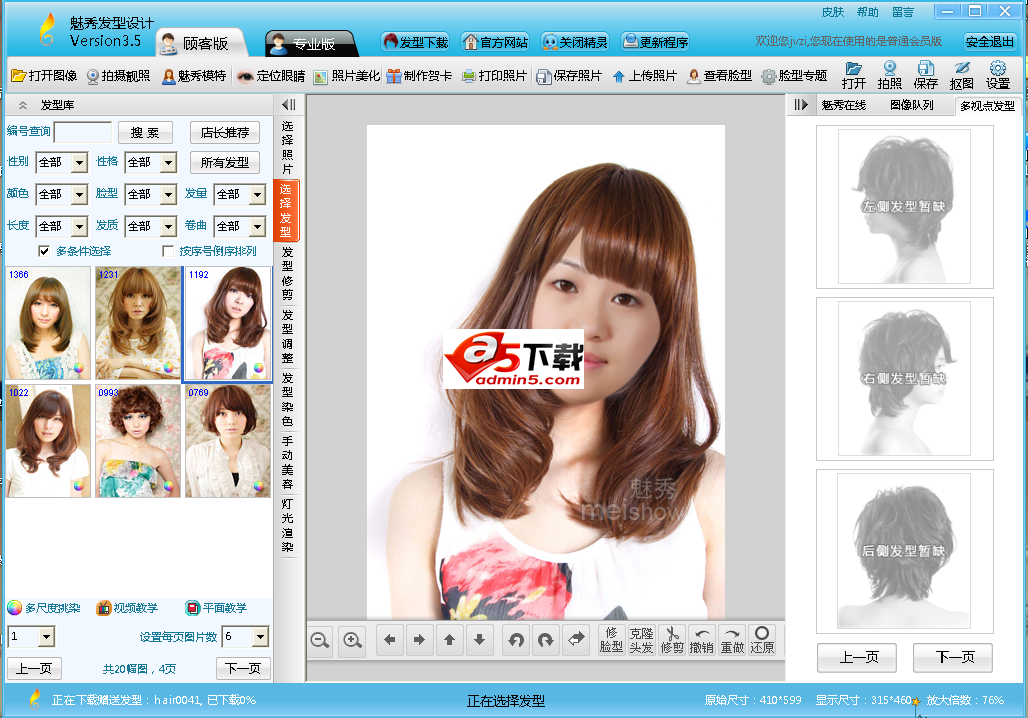 当前位置:下载COM绿色软件园 > 图形图像 > 其它工具 > 艾秀发型设计软件 v3.5