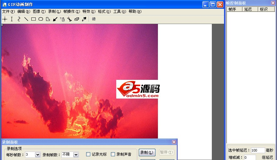 注:使用本工具生成的GIF动画会有所失真,如果需要高画质GIF动画,可用本工具录制好后转移到PS生成GIF动画。