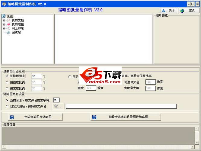 批量制作图片缩略图的工具。当您制作相册目录或将相片发布到网页时,为加快浏览速度,会将图片生成缩略图。这个工具可以一次将目录下的相片按规则全部生成缩略图。
