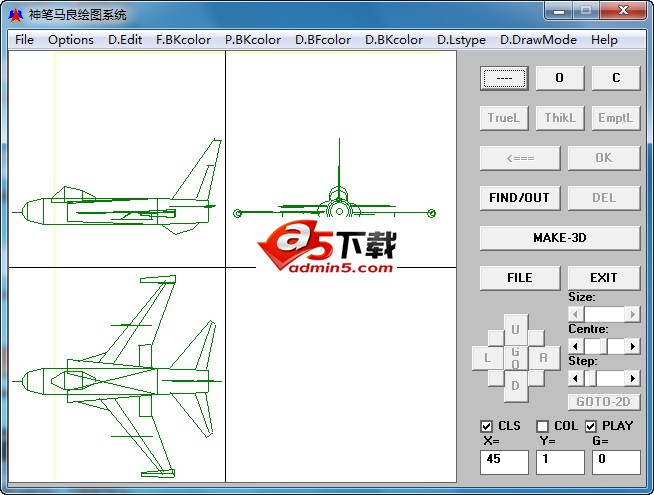 本系统可以将你画的平面图形神奇地自动变成三维的立体模型显示。