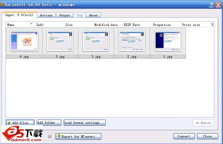 XnConvert是一款简单易用的批量图像格式转换软件。软件支持JPG, PNG, TIFF, GIF, Camera RAW, JPEG2000, WebP, OpenEXR等几乎所有的常见的图片和图形格式以及超过500其他图像格式。并能轻松的实现图像格式的转换、缩放图像比例、添加滤镜特效、水印等诸多功能,是用户实现批量图像格式转换功能的好帮手。需要的朋友快来下载吧!