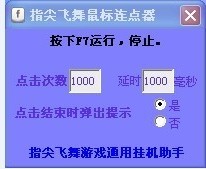 指尖飞舞鼠标连点器,是一款模拟鼠标连续点击的免费软件。使用方便,操作简单。可设置点击次数,和每点击一次的间隔时间。