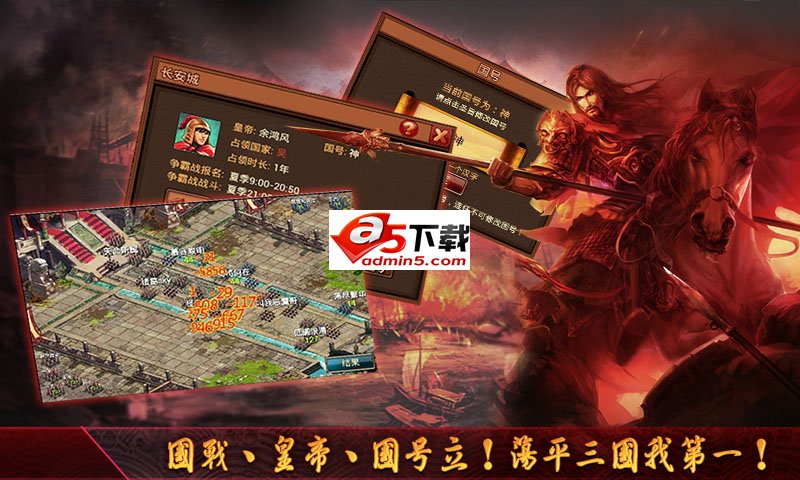 1.谋略为王:武将、兵种、阵法、战谋、诡计、密宝、锦囊、天书、反间、空城……谋略永远是游戏中最热门的亮点,玩家所面临的将是“敌对玩家”这种最难琢磨的对手!简单清晰却又千变万化的策略玩法,绝对让你爱不释手!