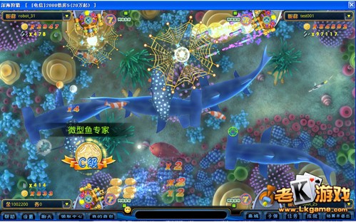 玩家只要满足房间限制后可以进入游戏小厅选择冒险地区,然后玩家可自主选择渔场或快速游戏。游戏开始后,购买子弹,调整武器的威力,就可以攻击游戏中游动的鱼类。玩家用来攻击鱼类的大炮共分为7个等级。被攻击的鱼类品种不同,其价值也不同。