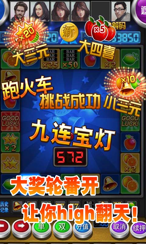 √100%完美移植街机,3D场景震撼无比,特效精美绝伦!大三元,小三元,跑火车,送灯节目