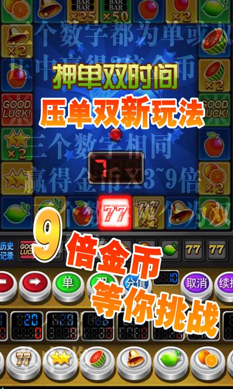 这款水果机,结合了街机房一代水果机和二代水果机的玩法。