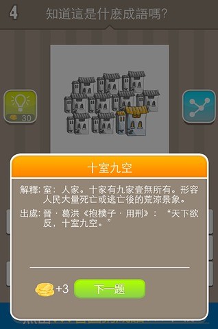 “疯狂猜成语”是一款全中文休闲益智游戏,可以和好友一起体验中国古老文化-成语的魅力,还可以通过微信分享,求助和挑战你的朋友们,看看谁才是才高八斗,学富五车的才子佳人。疯狂猜图同时熟悉成语,真是太好了。