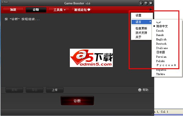 5、再点“设置”回到主界面,点击加速按纽进行游戏加速。