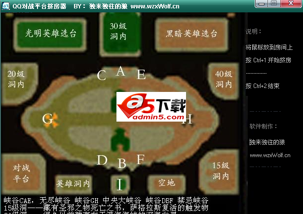 QQ对战平台挤房器一款非常精简且实用的软件,打开QQ对战平台,将鼠标放在想要进入的房间上,按Ctrl+1,自动开始挤房;按Ctrl+2结束。