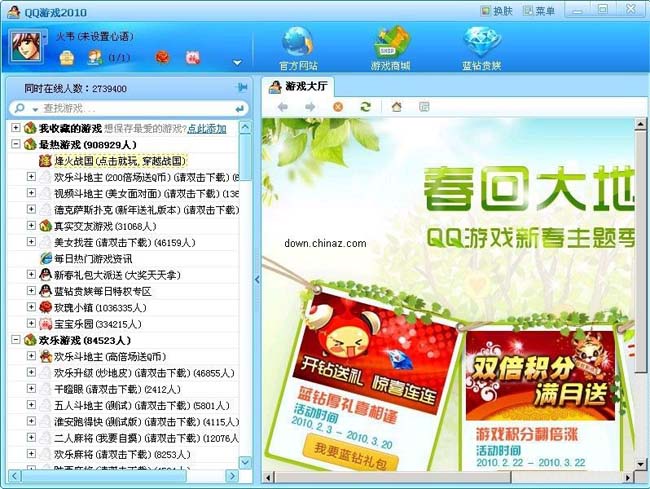 QQ游戏大厅官方下载正式版用QQ号和密码就可以登录到QQ游戏中心,无需再次注册。QQ游戏官方下载正式版在QQ上点击QQ游戏按钮即可进入丰富多彩的QQ游戏世界;在QQ上直接邀请好朋友一起玩游戏,独乐乐不如众乐乐;qq游戏有趣好玩、界面活泼亮丽,是年轻人最时尚的选择。