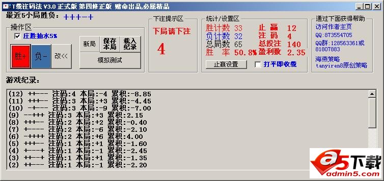 本软件根据 海燕策略之~~tanyiren8 T缆制作(非常适合打水以及各类1:1游戏,如百家乐单双,大小,21点,彩票类游戏等等):