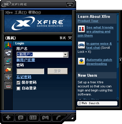 Xfire是专为游戏玩家设计的即时消息软件。你可以看到正在线上打游戏的朋友,同时能够看出他们正在玩什么游戏、在哪里玩,如果你想加入,那么很简单,单击一下鼠标就行。如果你不喜欢传统的IM软件的不便利性,那么Xfire绝对值得一试。