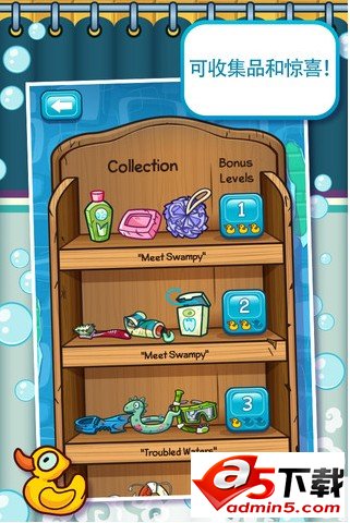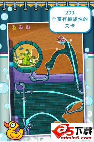 鳄鱼小顽皮爱洗澡(Where is My Water?)也叫鳄鱼小顽皮,鳄鱼爱洗澡、我的水呢?,是迪斯尼(Disney)开发的一款非常有趣的益智游戏,本作是一部基于物理原理的解谜游戏。 居住在城市地下的鳄鱼如同人类一般,也特别喜欢洗澡,你的任务就是帮助鳄鱼将清洁的水引过来。 这是一款极具挑战性的物理益智游戏,支持多点触控功能,精细的游戏图形界面和煽情的配乐都让这款游戏充满了趣味性。 鳄鱼的管道断了,在7个主题章节里,您要负责让水再流起来,帮助小鳄鱼得到洗澡的水。 每个章节包含20个富有挑战性的关卡。定期升级新关卡。