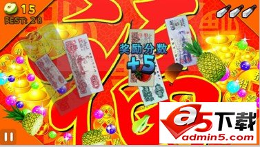 这是一款非常有趣的水果忍者风格游戏,当你切开水果就会有大把大把的钞票蹦出来,好像取款机一样,切的水果越多越有成就感,但是,要避开炸弹的袭击哦,快来显一显你的身手吧!